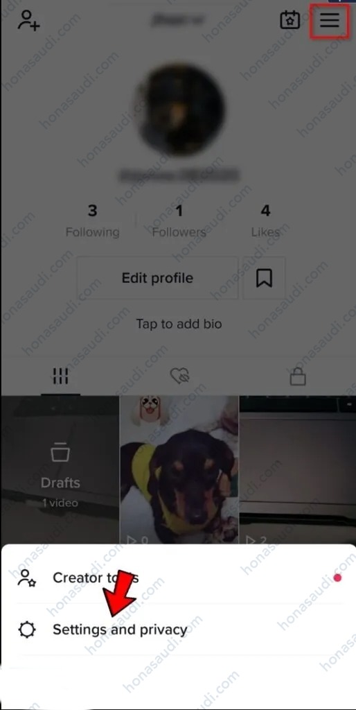 - من الصفحة الرئيسية الضغط على زر الخيارات “النقاط الثلاثة” في الزاوية العلوية.